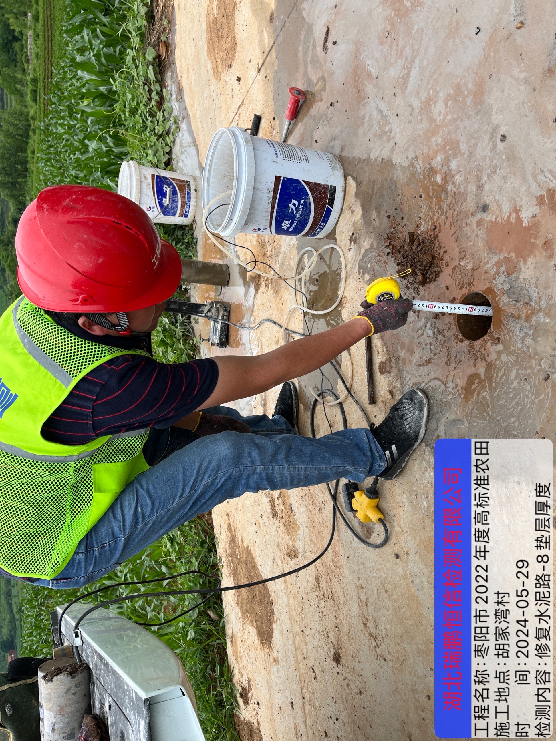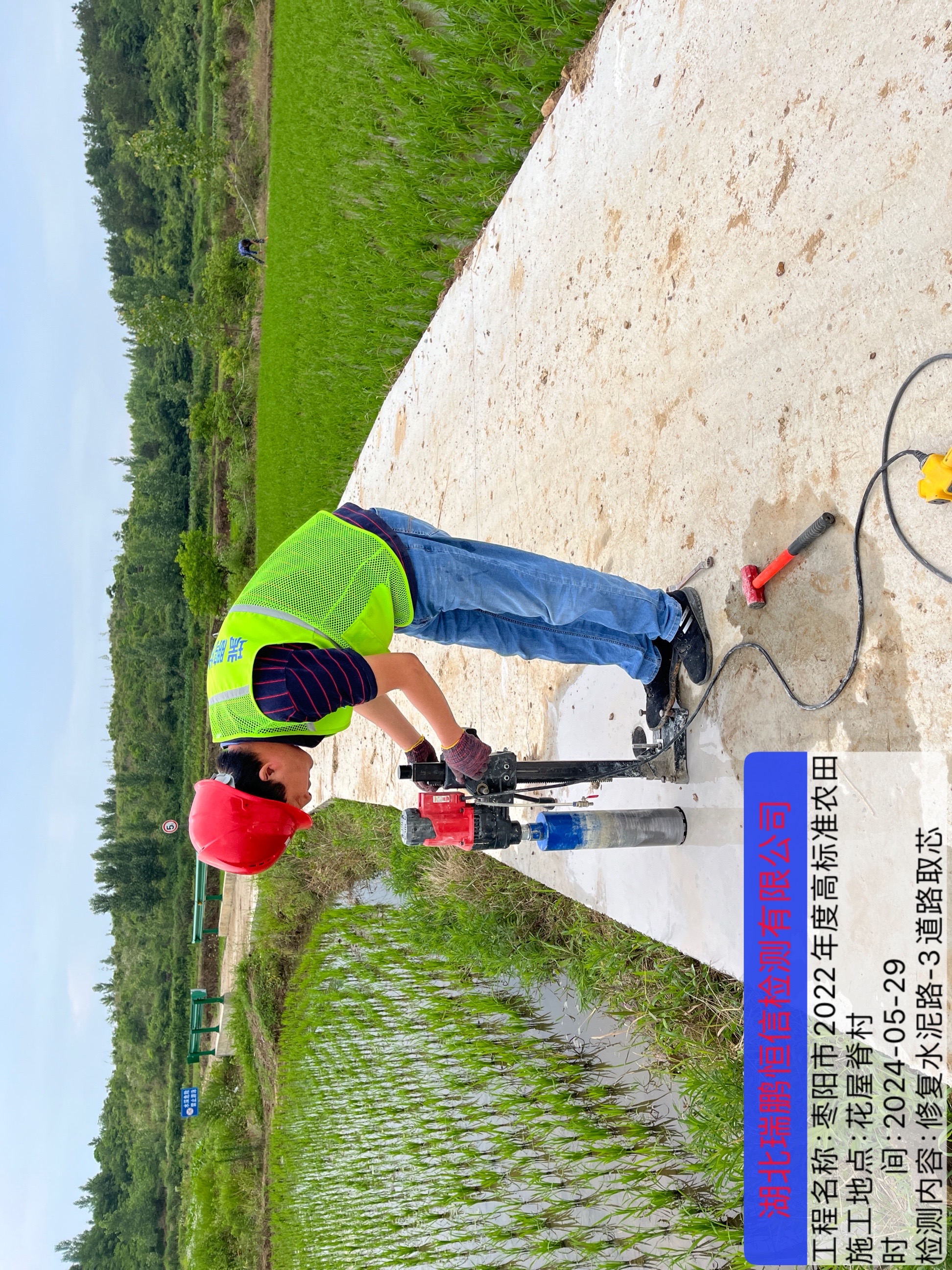 檢測內(nèi)容:混凝土強(qiáng)度回彈,水泥道路取芯,水泥道路長度、寬度、厚度、墊層厚度測量、泥結(jié)石道路長度、寬度、鋪土厚度測量及堰塘護(hù)砌長度測量,壓頂厚度測量,渠道護(hù)砌長度測量,開口尺寸、壓頂尺寸測量。